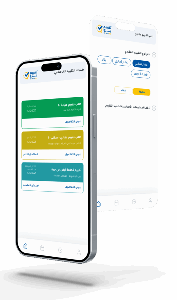 بخطوات بسيطة وواجهة استخدام سهلة، يمكنك تقديم طلب تقييم لأي نوع من الأصول التي تملكها، سواء كانت عقاراً، مركبة، أو حتى معدات وآلات متخصصة.